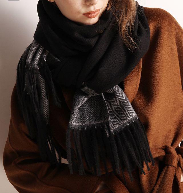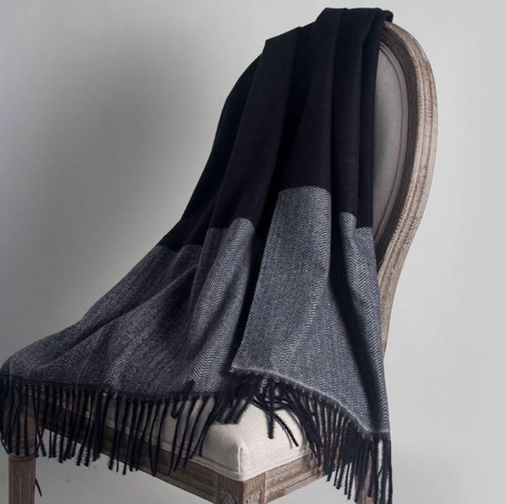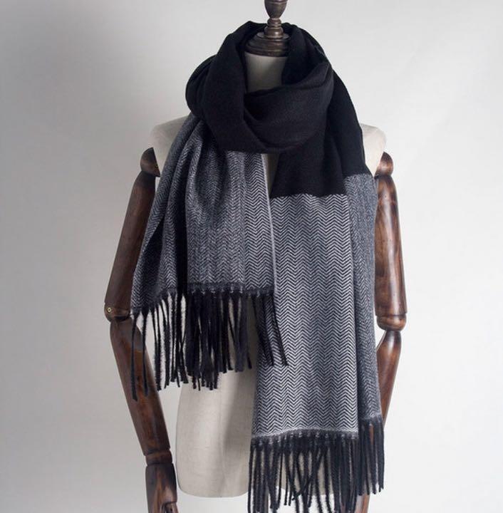 ◇ ブラック ◇ ツートンカラー カシミヤストール 大判