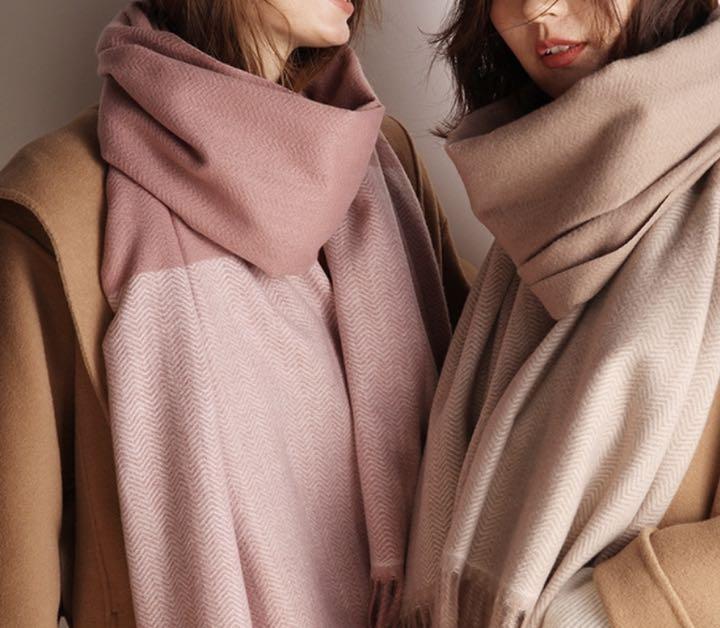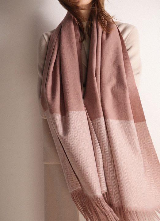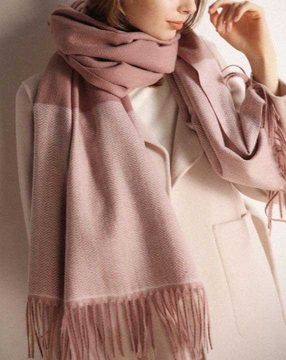 ◇ ベビーピンク ◇ ツートンカラー カシミヤストール 大判